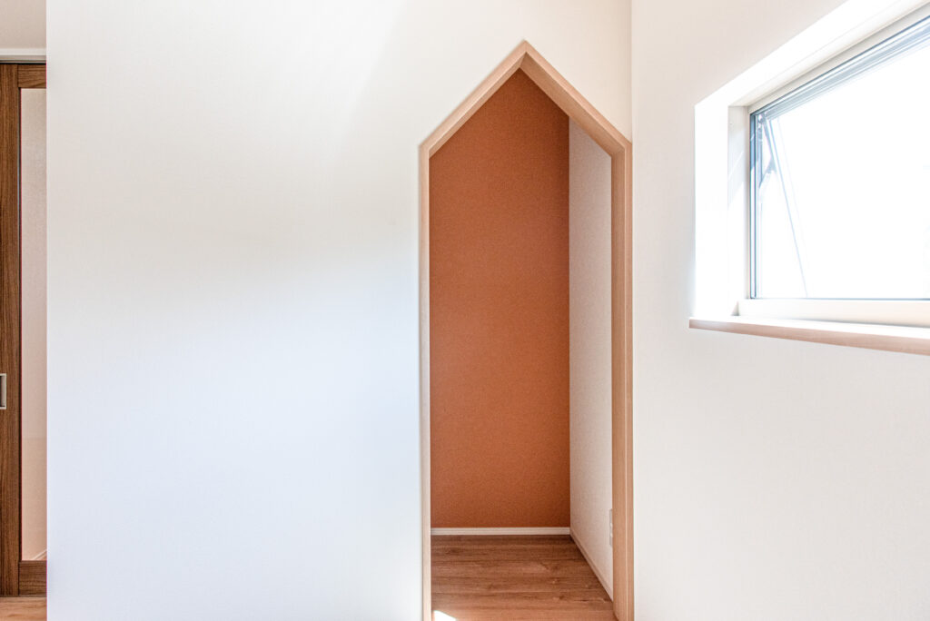 とんがりアーチがアクセントで空間全体が優しい印象に♩